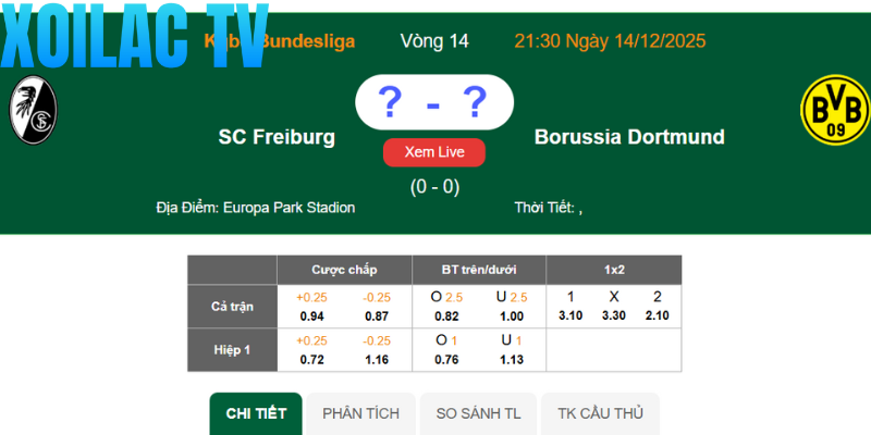 Lựa chọn Freiburg được chấp 0.25 là phương án an toàn và sáng suốt nhất ở thời điểm hiện tại. Dortmund vừa bị bào mòn thể lực sau trận hòa căng thẳng với Bodo/Glimt hôm 11/12, trong khi Freiburg được nghỉ ngơi và tập luyện trọn vẹn một tuần từ ngày 06/12.