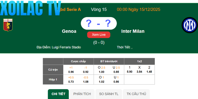 Bảng tỷ lệ kèo trận nhận định Genoa – Inter Milan